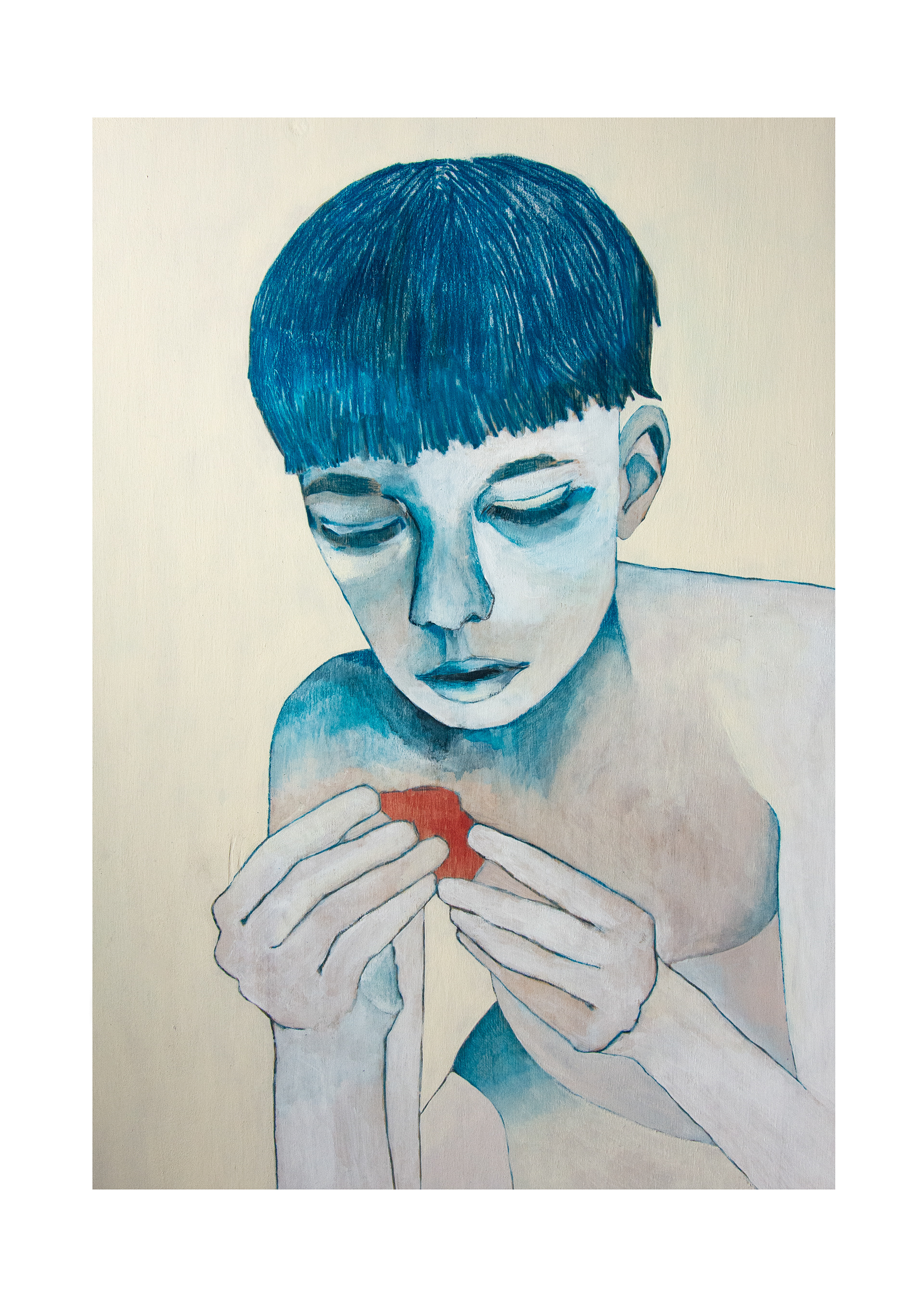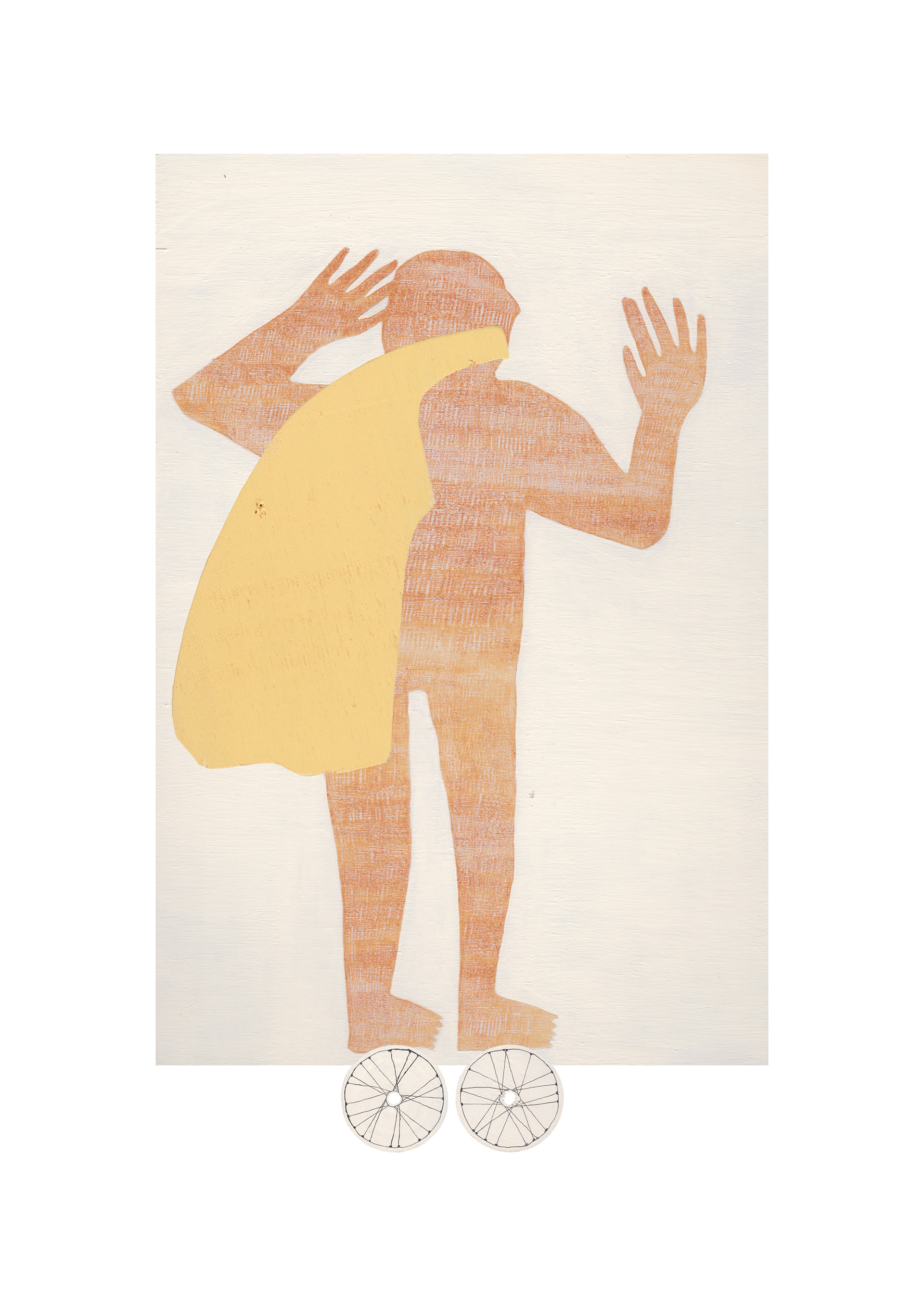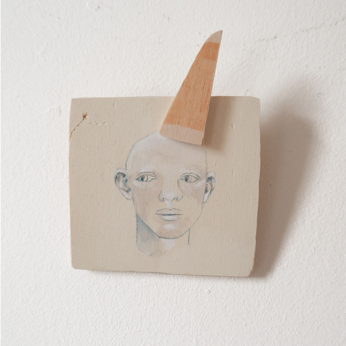 'Op je tanden bijten' 2020 - Potlood en verf op resthout