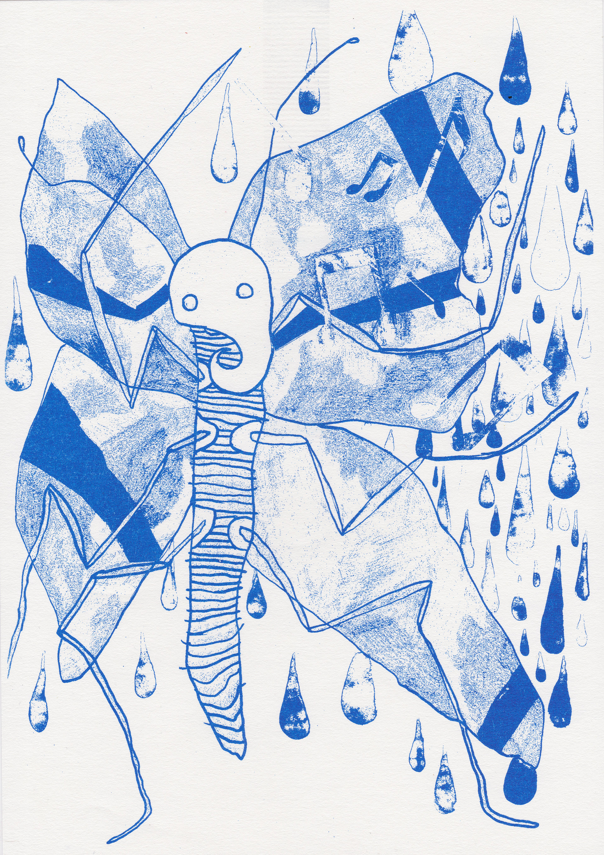 'Vlinder viert feest' risoprint van een analoge illustratie